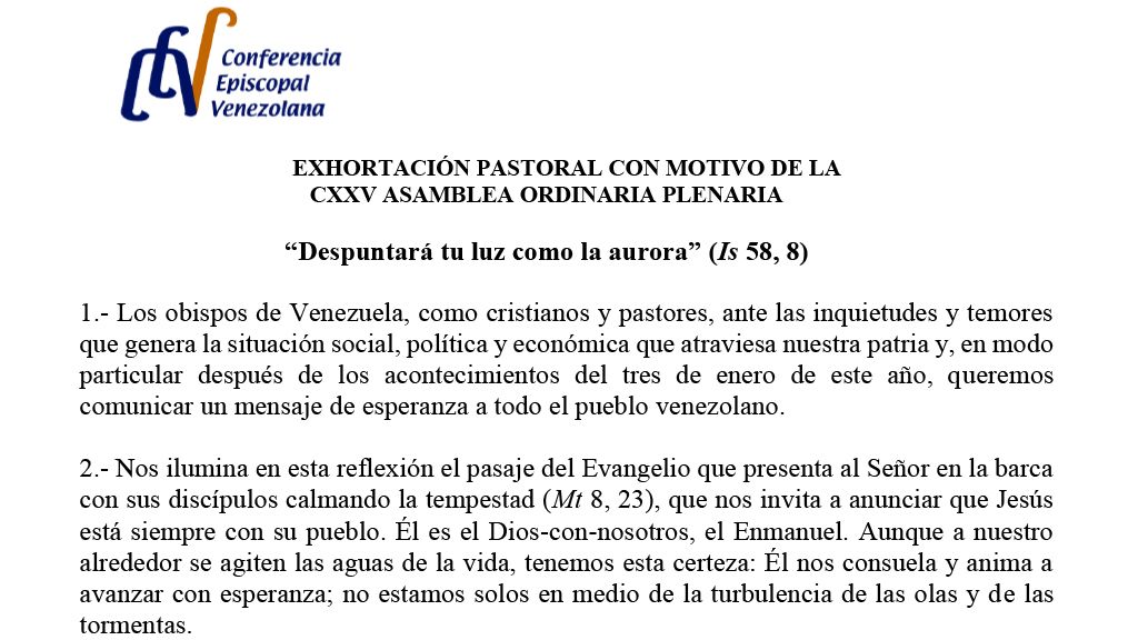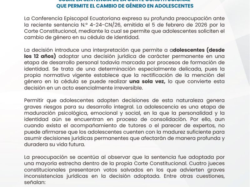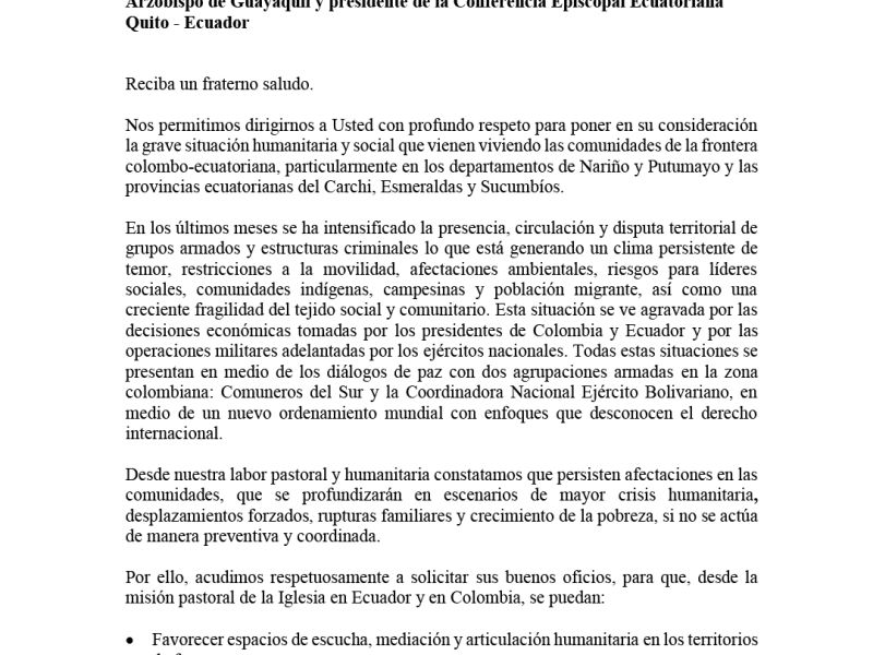 MENSAJE A LA SOCIEDAD ECUATORIANA 157° ASAMBLEA PLENARIA DEL EPISCOPADO ECUATORIANO